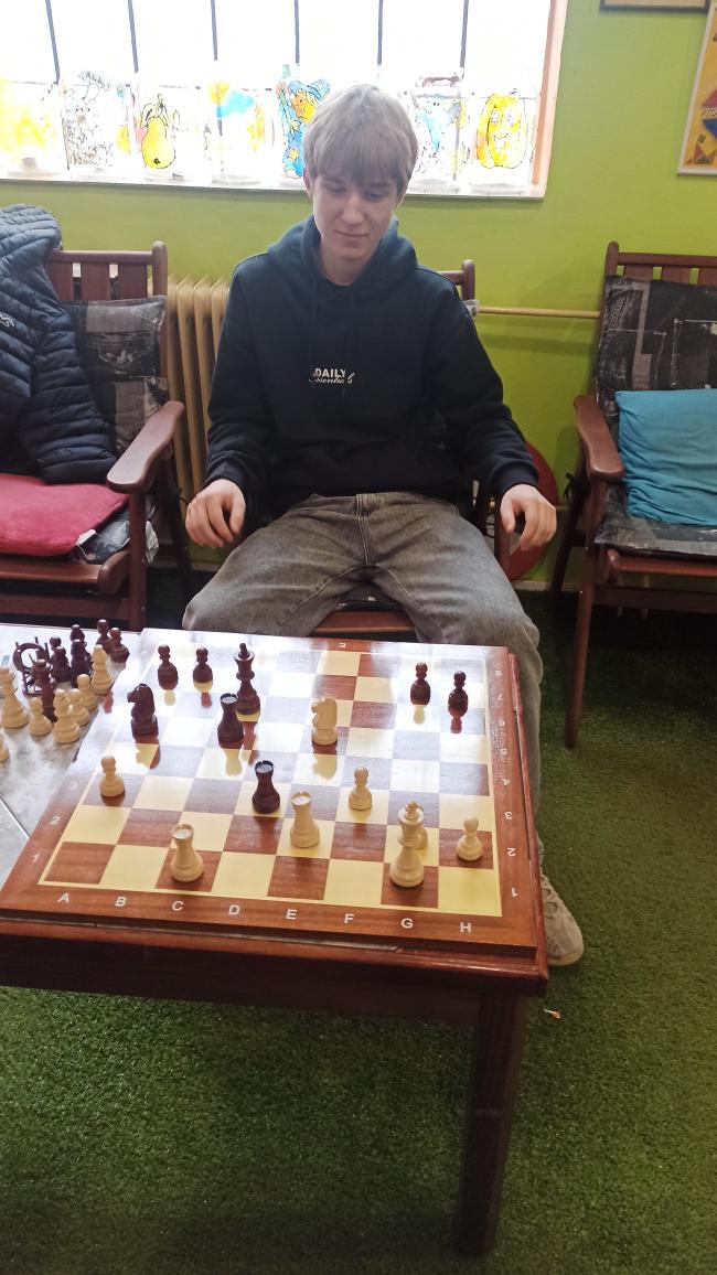 Další výhru si připsal na 7. šachovnici Petr Staněk s Jakubem Špaňhelem. Jakub, ač šachový nováček, nehrál špatně. Ale Petr postupně získal sloupec, potom kvalitu, na sedmou řadu instaloval věž a dámu, kterou dal soupeři mat. 3,5-0,5