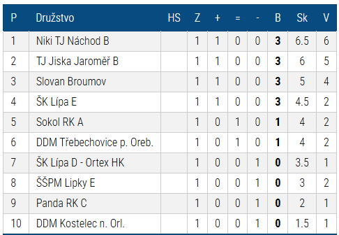 Bodový zisk myslím odpovídal dění na šachovnicích. Díky vysoké výhře 6:2 jsme po úvodním kole na druhé příčce v tabulce. Solidní vstup do sezóny – Panda sice kousala, ale nakonec jsme ji zkrotili. A jak se říká – kdo vyhraje první kolo, míří vysoko. Jen pozor, aby nám ta euforie nevzala chuť k tréninku!