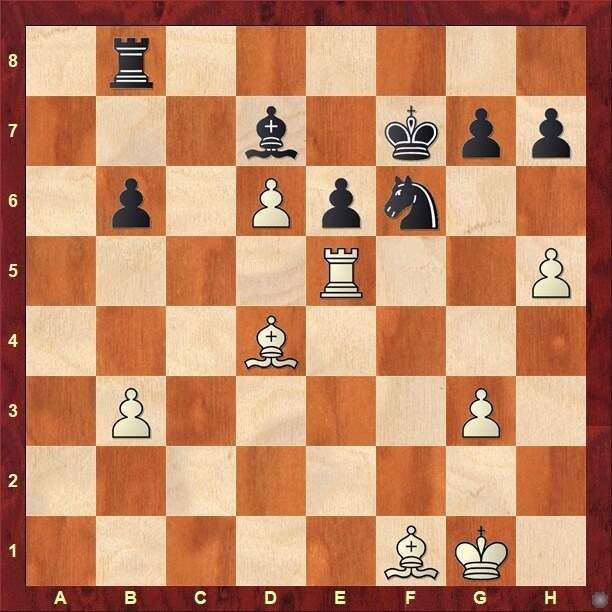 O 20 tahů později Honza zahodil asi nejlehčí výhru po 55.Sd3 s dalším šachem na g6 a pak se uvidí, zda vyhraje po Vxf6, Kc7, nebo po Vc2. Místo toho „získal“ pěšce na b5 nevěda, že všechny věžovky jsou remis. Olda mu to vysvětlil po 55…e5. Olda se tak po zásluze stává bojovníkem kola.