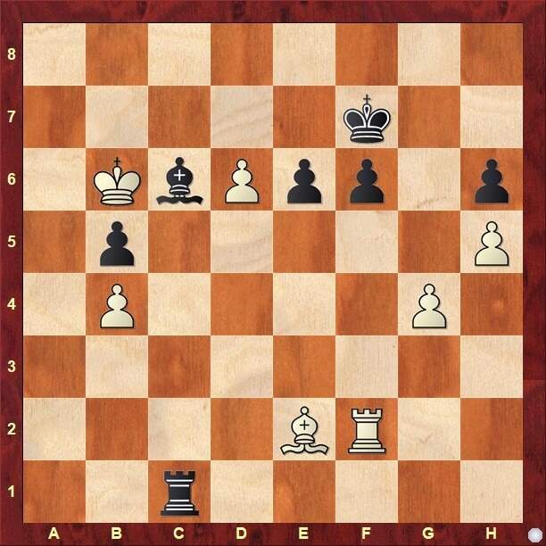 Vše tedy viselo na Oldovi. Oldřich Wenke bojoval s mým dalším rychnovským druhem v trenérské zbrani, s Honzou Horákem. Také měl pocit, že je fér dovolit soupeři hrát, po čem jeho srdce touží a na 1.e4 e6 2.d3 d5 3.De2 (černý po těchto patazích již stojí o něco lépe) se vyvíjel nic zlého netuše, a6 zjistil, že má na výběr pasivní koncovku a dlouhé utrpení svého krále. Vybral si to první – a ta pozice byla tak hnusná, že ani na mysl nepřišlo, že po Vc8 by byla rovná!