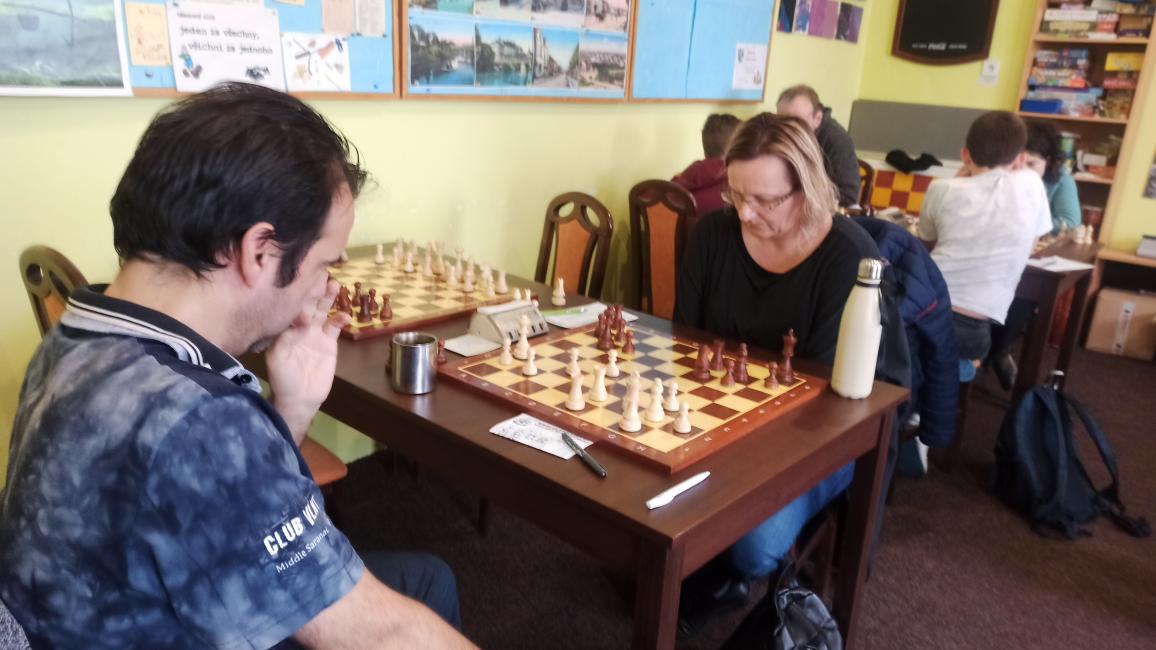 Následovala remíza na 4. šachovnici. Roman Kudr a Ilja Mareš rozehráli anglickou hru čtyř jezdců. Zvolili variantu, kde obvykle dochází ke střetu figur v pozdějších částech partie. Nakonec se obě po opakování tahů spokojily s remízou. 1,5-0,5