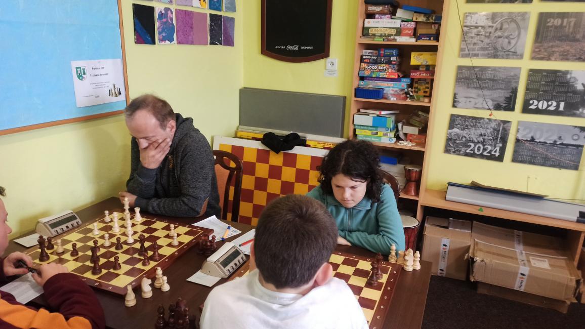 Na druhé šachovnici se utkala Šárka Marxová se Štěpánem Kroulíkem. Rozehráli Londýnský systém. Štěpán pěkně centralizoval figury a poté se vrhl na černého krále. Místo pomalého pozičního utahování šroubů proměnil šachovnici v taktickou přestřelku. Obětoval postupně kvalitu a pěšce a černý král se ocitl pod útokem. Šárce nezbylo nic jiného, než vzdát. 4,5-1,5