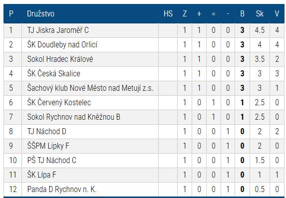 Tak báječný vstup do sezóny nečekal ani ten největší optimista. Překvapili především nováčci. Všem hráčům gratuluji k pěkným partiím. V tabulce po prvním kole okupujeme první příčku!