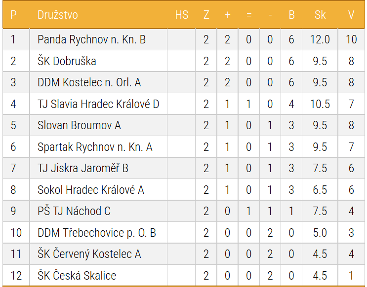 Druhé kolo Krajské soutěže východ jsme hráli 5. 11. 2017 doma proti Kostelci n/O. Nastoupili jsme bez kapitána Tomáše Prouzy na první šachovnici a na sedmé a osmé šachovnici s náhradníky z řad našich nadějí. Soupeř dorazil s kompletní první sedmičkou, jen na poslední šachovnici s prvním náhradníkem, takže se čekal vyrovnaný boj.