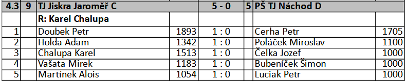 RP: Jiskra Jaroměř C – Náchod D 5:0