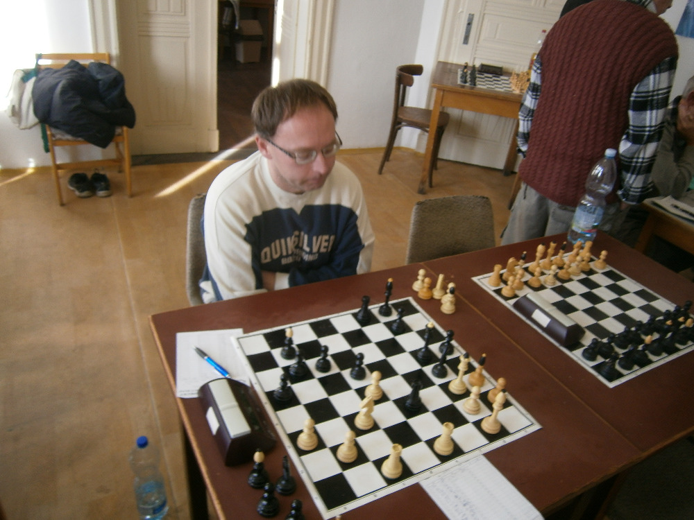 Bojovnou partii sehrál šermířským stylem Honza Kuneš na sedmičce s Petrem Dusbabou. Hrál se Sozinův útok a oba soupeři se střídali v taktických potyčkách. Na 64 polích mohli přihlížející vidět téměř vše, otevřený sloupec na krále a na něm zdvojené těžké figury, královskou procházku, vzájemné manévry a napadání dámy a lehkých figur, vazby. Honza měl trochu lepší pozici, ale zato horší čas. Po vzájemné oběti kvality tak nakonec souhlasil s nabídnutou remízou. Stav zápasu je pro nás příznivý 3-1. Solidní výkon!