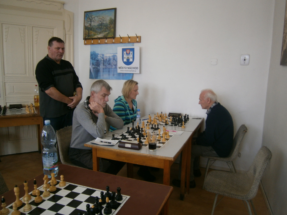 V závěrečný díl letošní „náchodské trilogie“ se hrál v neděli 10. 12. 2017 od 10h v kině Vesmír. Dávali utkání čtvrtého kola Krajského přeboru proti domácímu TJ Náchod B. Soupeř se nesešel v ideální sestavě a naopak za Jaroměř nastoupil premiérově hráč s titulem IM. Na následujících řádcích popíšu jednotlivé aktéry v hlavních rolích a průběh našeho šachového koncertu. Už po zahájení stojíme na všech deskách mírně líp. Jako první vyhrál na 6. šachovnici Roman Kudr. Rozehrál s Milanem Burdilákem výměnou francouzskou. V zahájení odmítl remízu s tím, že si přijel zahrát. Postupně obsadil volný sloupec, svoji věž instaloval na osmou řadu. Soupeř se po taktické chybě, odtažným šachem ztrácel věž, vzdal. Dobrá práce 1-0!