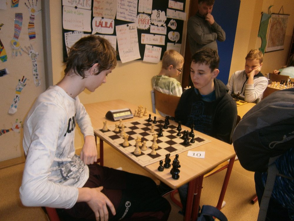 Tonda Korityák uhrál pouze 3 body. Po 100% výkonu na přeboru škol tentokrát moc spokojený nebyl. Ve střední hře kazil dobře rozehrané partie především díky taktickým přehlédnutím. Přitom dokáže zahrát lépe. Tonda stejně jako Adam má potenciál hrát v podobných turnajích o medaile. Chce to pravidelně řešit diagramy na taktiku!