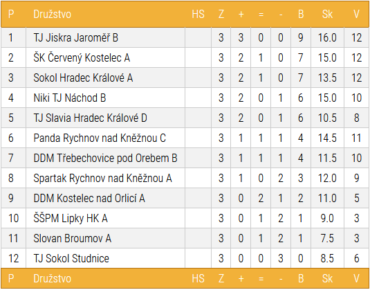 V neděli 18. 11. se konalo 3. kolo KS východ. Sestava na zápas v Náchodě se nerodila zrovna lehce. Omluvenky se začaly množit hned od začátku týdne, a tak kapitán, který musel z rodinných důvodů na Moravu, měl prakticky celý týden co dělat. Ve čtvrtek byla sestava jasná, ale vzhledem k soupeři, mnoho respektu nebudila.