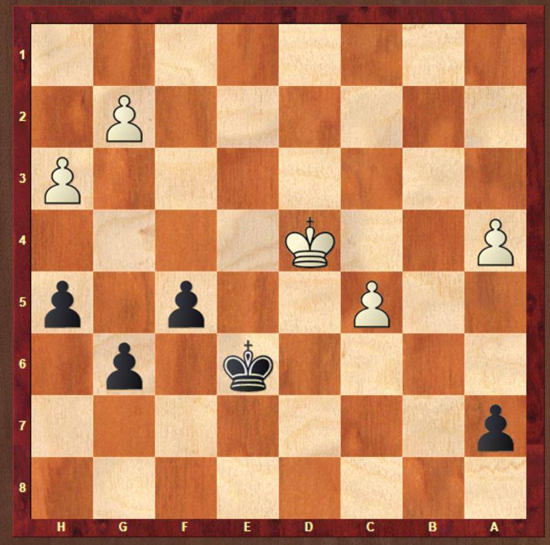 Na čtvrté šachovnici dohrával jako poslední Roman Kudr, zkušený matador z Dubence, s Jaroslavem Zikmundem. Po zahájení se partie vyvíjela slibně. Roman měl pěšce navíc a lepší čas. A tak byla remíza popř. výhra v očekávání. Nicméně se hráči v oboustranné časové tísni dostali do dámské koncovky, kde měli stejně pěšců a soupeř aktivnější pozici s pěšcovou převahou na dámském křídle. Poté došlo k výměně dam a černý si mohl zajistit výhru pouze přesným pokračováním. Roman bohužel zvolil jiný tah, který vedl k prohře a soupeř se mohl radovat. 3,5-4,5.