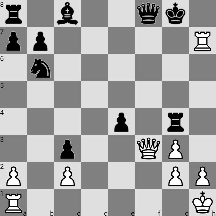 Po neopatrném braní 26...fxe4 přišlo 27.Vh8+ a cesta k výhře byla opět otevřená...