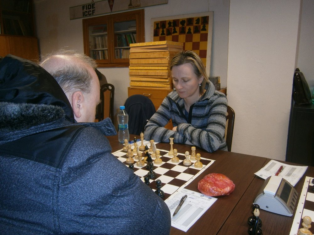 Na 5. šachovnici hrála Radka také sicilskou, ale zavřenou. Po neopatrném tahu soupeře 18...Jc6 šlo po 19.Sd5+ a ústupu krále zahrát 20.e6! Na úrovni velmistrů by takový pěšec asi rozhodl partii. Chápu však Radku, že se bála, aby o pěšce nepřišla – taky bych se bál! V závěru partie už Radka věděla, že soupeřova pozice je pohodlnější a proto musí hrát opatrně. Nakonec opakovala ve věžové koncovce tahy.