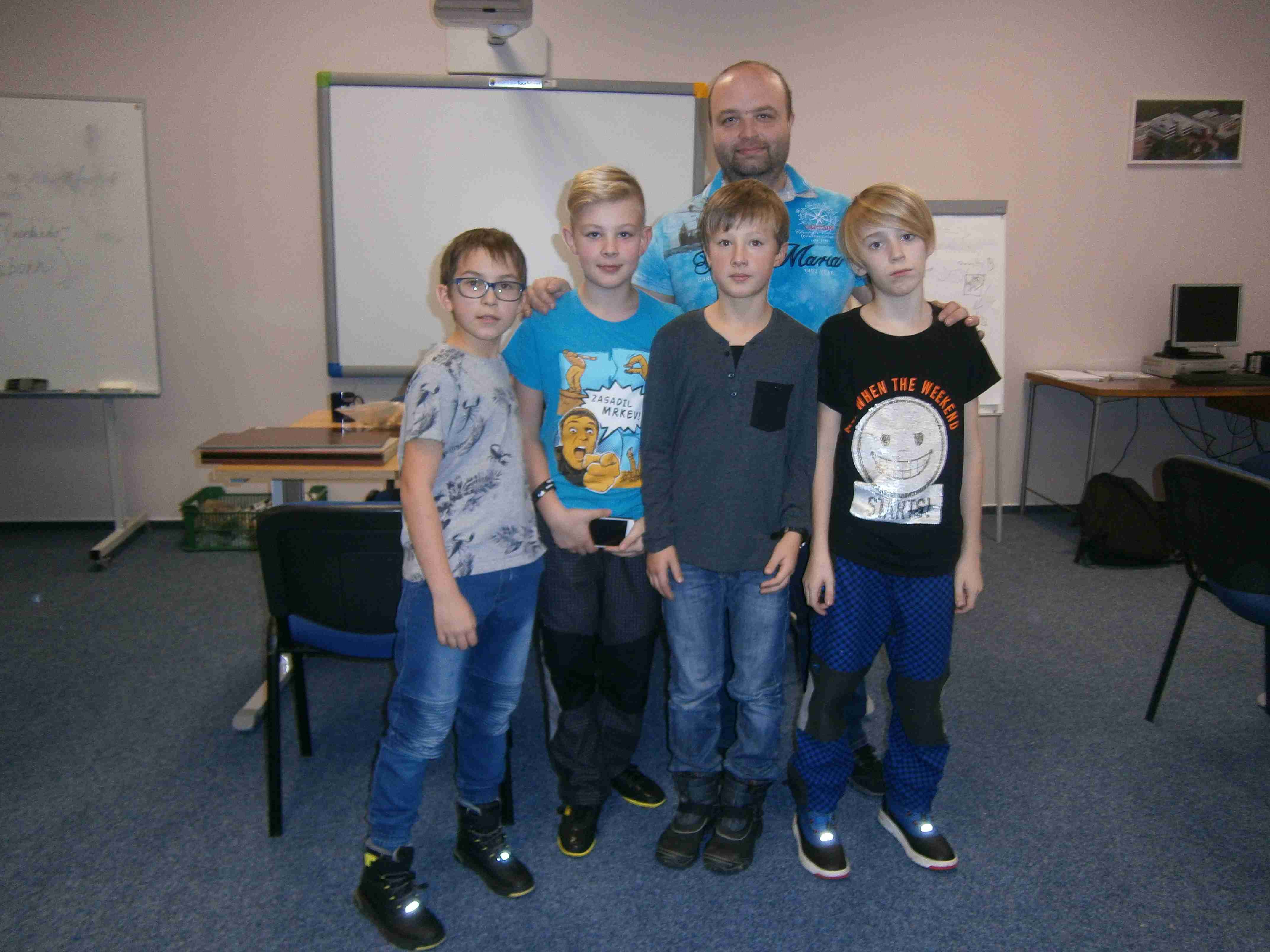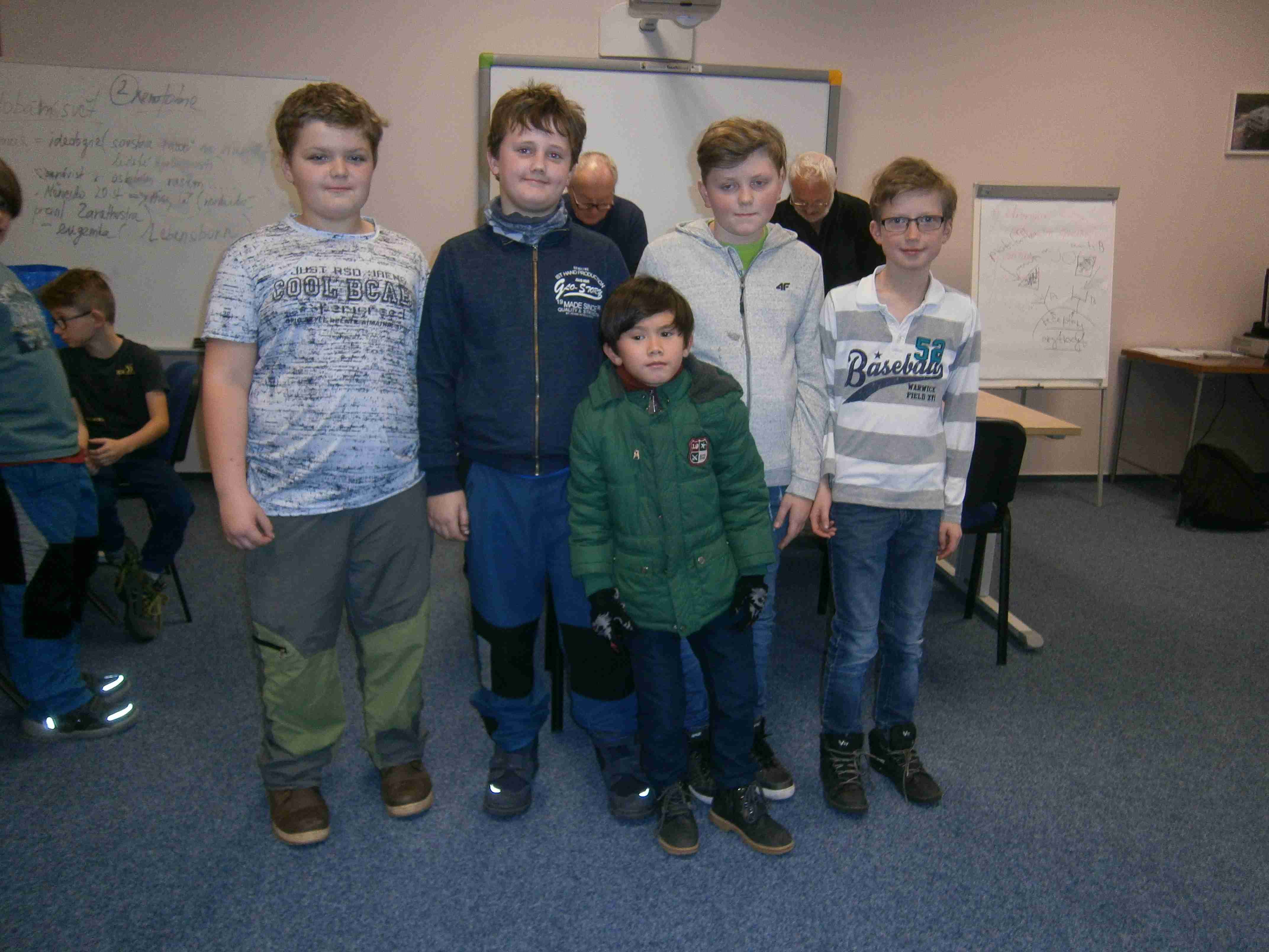 Nejúspěšnější jsme byli v kategorii 1. stupeň ZŠ. Hrála se dvoukolová soutěž 4 školních družstev. Zlato vybojovala suverénním výkonem ZŠ Velichovky s převahou 4,5 bodu. Tým hrál ve složení 1. šach. Jan Otman 6b/6, 2. Vojtěch Dostál 3b/6, 3. Jáchym Bém 2,5/6, 4. Antonín Tomek 5b/6. Gratulujeme k postupu do krajského kola! Stříbrnou příčku obsadilo družstvo ZŠ Velká Jesenice. Školu reprezentovali: 1. šach. Dominik Uždil 3b/6, 2. Martin Lukášek 2,5/6, 3. Pavel Klempíř 4b/6 a na 4. šachovnici se střídali Vojta Bělobrádek 1,5b/3 s Nikolasem Knopem 1b/3. Dobrým výkonem předstihli 3. ZŠ Studnice a 4. ZŠ Meziměstí. Jsou tak náhradníci na Krajský přebor.
