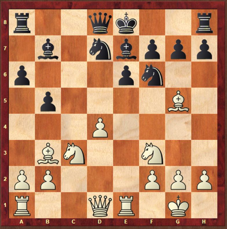1. e4 c6 2. d4 d5 3. exd5 cxd5 4. c4 dxc4 5. Sxc4 e6 6. Jf3 Jf6 7. Sg5 Se7 8. Jc3 a6 9. O-O b5 10. Sb3 Sb7 11. Ve1 Jbd712. d5! Jxd5? 13. Sxd5 Sxd5 14. Sxe7 Sxf3 15. Dxf3 Kxe7 16. Jd5+ Kf8 17. Jc7 Dxc7 18. Dxa8+ Jb8 19. Vac1 Dd8 20. Ved1 De8 21. Db7 g6 22. Vc8 Kg7 23. Vxe8 Vxe8 24. Dc7 g5 25. Vd8 1-0