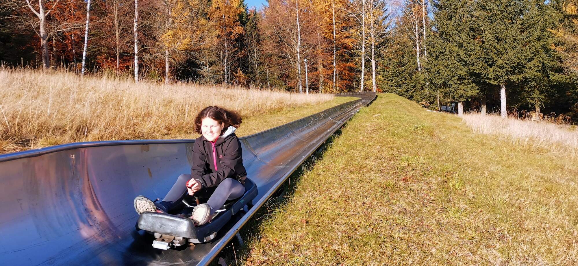 Když jsme všichni sjeli dolů, domluvili jsme se ještě s Archlebovými a šli jsme k lanovce na Medvědín. Nahoře na Medvědíně bylo nádherné počasí, s výhledem Sněžku. Cestu dolů jsme šli pěšky. Viděli jsme i první sníh!!! Po večeři jsme si ještě zahráli Bang.