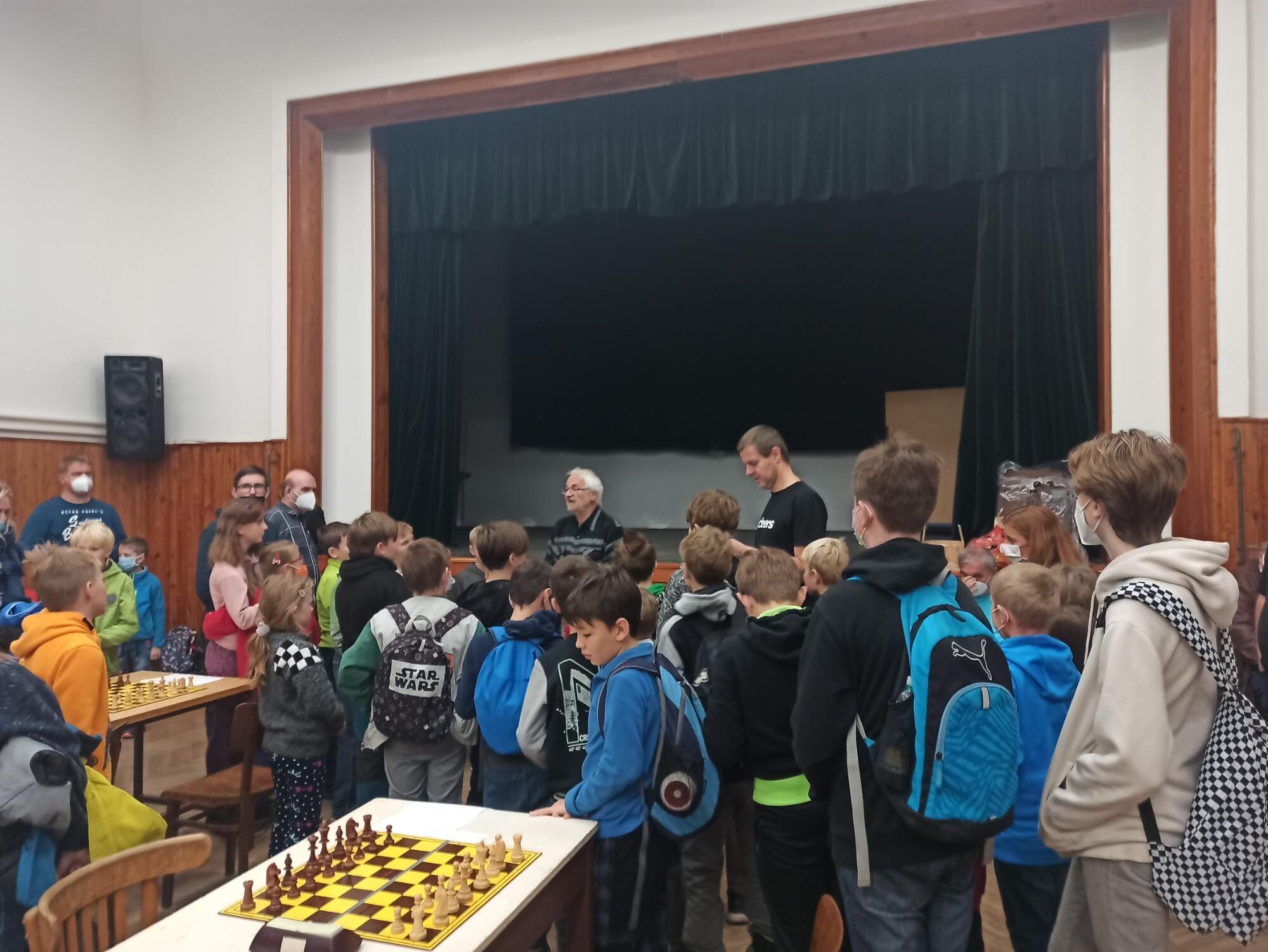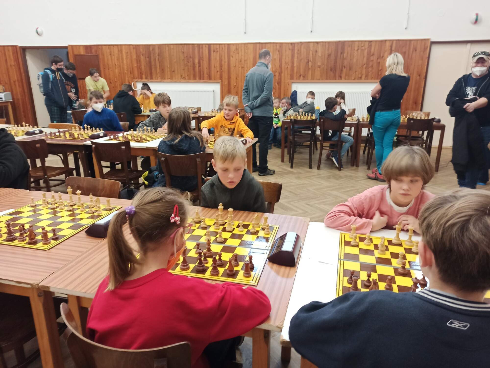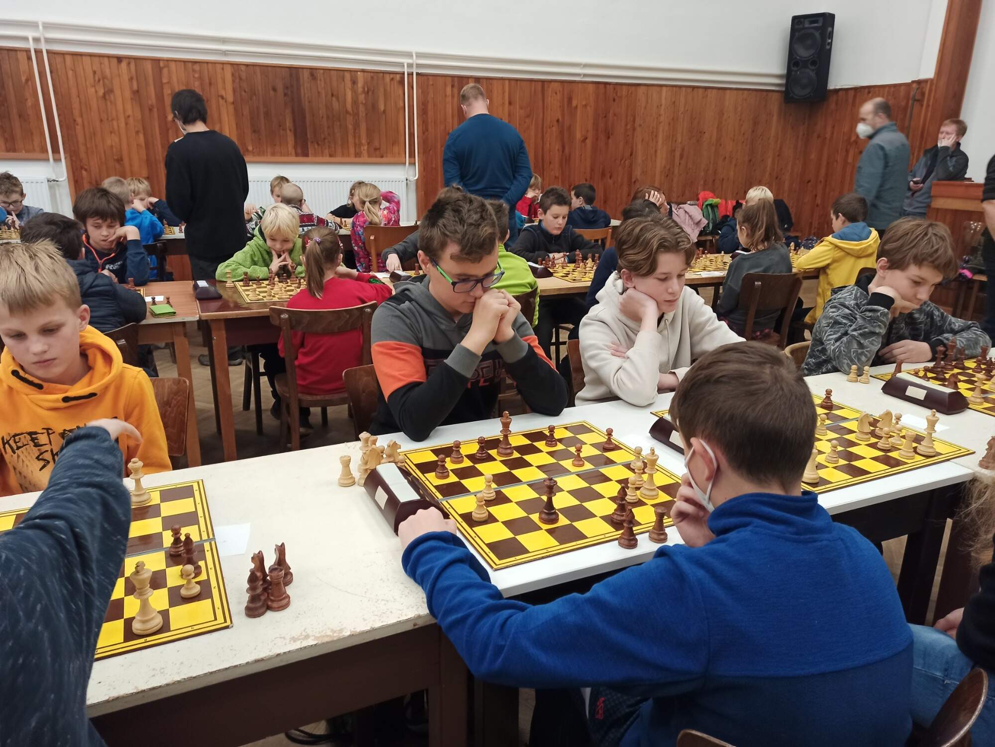 V sobotu 13. listopadu 2021 se v Červeném Kostelci uskutečnila vůbec první Velká cena mládeže v historii. Přijelo si zahrát 69 dívek a chlapců z různých koutů našeho kraje, ale i z Prahy. Hrálo se rapid tempem 2 x 15 minut + 5 s na tah. Chlapci a dívky hrají ve své věkové kategorii společně, ale jsou vyhodnocováni zvlášť. Na dětském turnaji vás překvapí spousta aktérů. 1) samotné děti. Pro ně jsou nejzajímavější vzájemné boje černobílých armád. Často se může v průběhu partie několikrát otočit výsledek, ale vždy je na konci výhra, remíza nebo prohra. Když nesedí za šachovnicí tak běhají, skáčou, sledují ostatní partie, debatují (z pohledu pořadatelů moc nahlas), analyzují příčinu prohry, hrají "holanďany", svačí nebo koukají do mobilu na nějakou hru. Dále pak 2) rozhodčí. Vidíte jednoho jak něco vysvětluje (už počtvrté), druhý usazuje vylosované dvojce k dalšímu kolu, třetí odhaduje výsledek chybějící partie a marně hledá její hledá aktéry, kteří už dávno na šachy zapomněli a hrají si v předsálí. Čtvrtý sleduje les hlásících se rukou (hráči reklamují nemožný tah soupeře, což se stává pravidlem většinou v mladších kategoriích). Nesmíme zapomenout na 3) rodiče. Ty najdeme nejčastěji s fotoaparátem v ruce. Někteří bedlivě sledují průběžné pořadí, jiní jsou v poklidu zabraní do četby zajímavého románu nebo diskuse s dalšími rodiči a ostatní a trnou nad partiemi svých ratolestí. Do toho ještě 4) trenéři, 5) diváci a 6) pořadatelé. A pak že šachy nejsou akční sport...