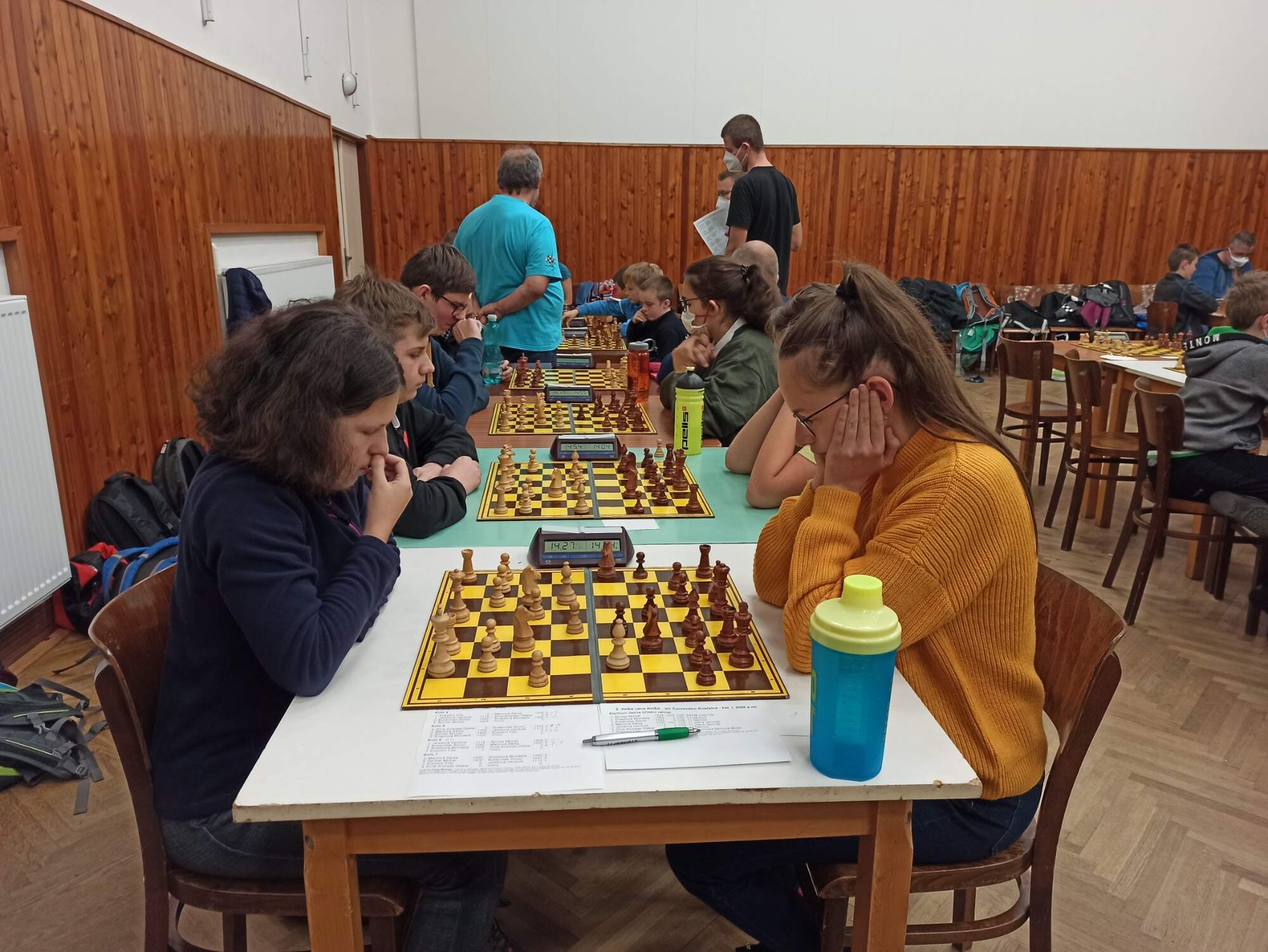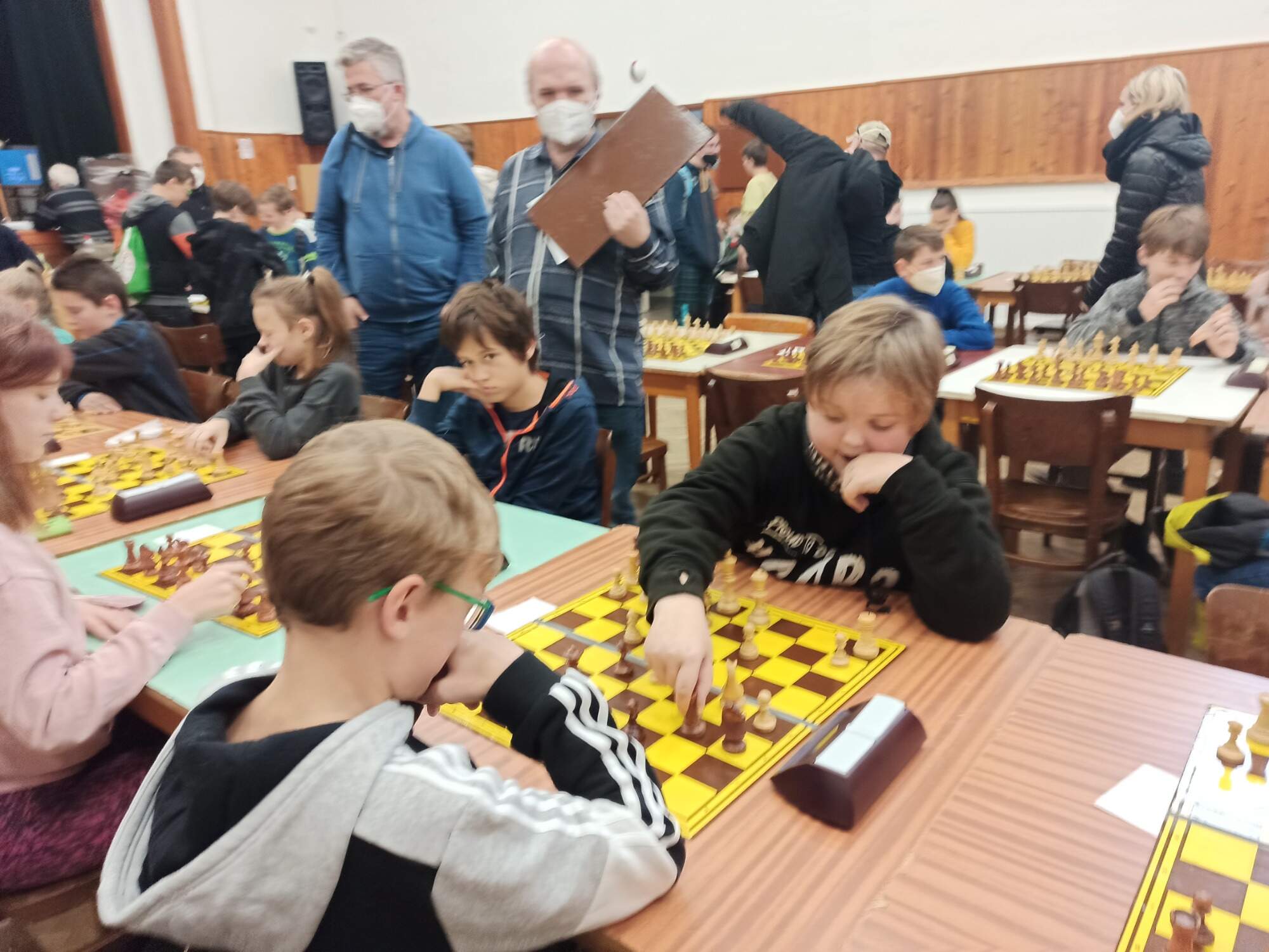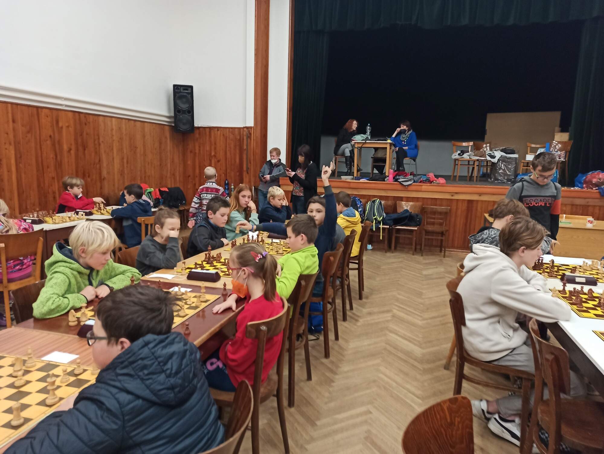 V sobotu 13. listopadu 2021 se v Červeném Kostelci uskutečnila vůbec první Velká cena mládeže v historii. Přijelo si zahrát 69 dívek a chlapců z různých koutů našeho kraje, ale i z Prahy. Hrálo se rapid tempem 2 x 15 minut + 5 s na tah. Chlapci a dívky hrají ve své věkové kategorii společně, ale jsou vyhodnocováni zvlášť. Na dětském turnaji vás překvapí spousta aktérů. 1) samotné děti. Pro ně jsou nejzajímavější vzájemné boje černobílých armád. Často se může v průběhu partie několikrát otočit výsledek, ale vždy je na konci výhra, remíza nebo prohra. Když nesedí za šachovnicí tak běhají, skáčou, sledují ostatní partie, debatují (z pohledu pořadatelů moc nahlas), analyzují příčinu prohry, hrají "holanďany", svačí nebo koukají do mobilu na nějakou hru. Dále pak 2) rozhodčí. Vidíte jednoho jak něco vysvětluje (už počtvrté), druhý usazuje vylosované dvojce k dalšímu kolu, třetí odhaduje výsledek chybějící partie a marně hledá její hledá aktéry, kteří už dávno na šachy zapomněli a hrají si v předsálí. Čtvrtý sleduje les hlásících se rukou (hráči reklamují nemožný tah soupeře, což se stává pravidlem většinou v mladších kategoriích). Nesmíme zapomenout na 3) rodiče. Ty najdeme nejčastěji s fotoaparátem v ruce. Někteří bedlivě sledují průběžné pořadí, jiní jsou v poklidu zabraní do četby zajímavého románu nebo diskuse s dalšími rodiči a ostatní a trnou nad partiemi svých ratolestí. Do toho ještě 4) trenéři, 5) diváci a 6) pořadatelé. A pak že šachy nejsou akční sport...
