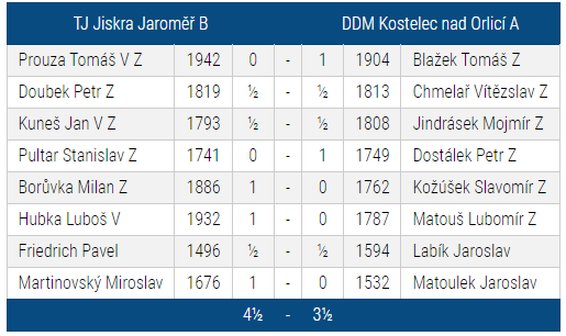 V neděli 5. 12. 2021 jsme porazili ve 4. kole KS Kostelec nad Orlicí. K reportáži se nikdo nehrne, měl ji psát Tom, ale dopadlo to jako vždy, tak to je opět na mě. Zápas jsem nehrál a partie znám jen z doslechu.