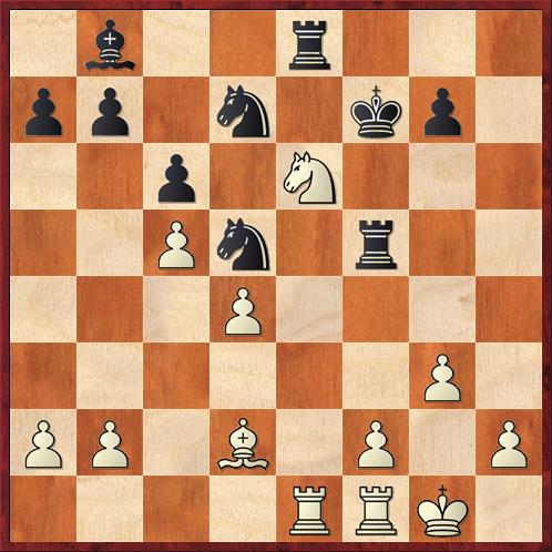 Na tom prvním diagramu jsem viděl 18...Vfd8 (táhnu figurou, která stojí nejhůř a kterou můžu zlepšit!), ale nelíbilo se mi, že po 19.f3 Sb7 20. f4 Jg6 bílý vyhraje boj o pole c6, kde bude kůň sakra nepříjemný. Ale počítač mi řekl, že pozice je natolik dobrá, že je "lehce" vyhraná i bez kvality: 21.Jc6 Sc5! 22.Jxd8 Vxd8 (viz druhý diagram).