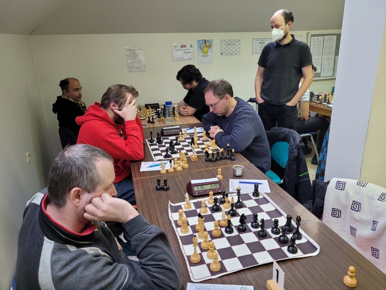 Nejdéle bojoval na první šachovnici Pavel Čech. Netroufám si hodnotit hráče jeho kvalit, takže jenom moje dojmy. Dlouho se zdálo, že se v partii nic neděje. Pavel hrál aktivně, vylepšoval si figury, ale soupeř se bránil přesně. Poziční výhody se Pavlovi podařilo zúročit až v koncovce, kterou pak s přehledem vyhrál.
