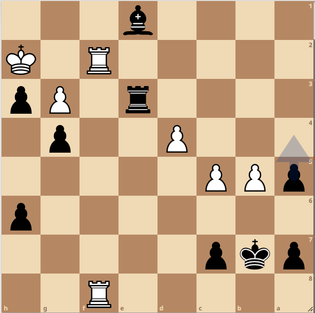 Asi by nikdo z nás v tu chvíli nechtěl hrát rozhodující duel utkání, kdy se stále hrálo o to, zda udržíme svou naději na 3 bodíky nebo si z Jičína odvezeme boj jediný. Petr Staněk asi měl nervy ze železa, kdy po nevydařeném zahájení ho soupeřka (Lada Zelbová) připravila o kvalitu. Ovšem Petrovi se podařilo na královském křídle vytvořit nepříjemné hrozby na bílého krále s možností postupu pěšců do dámy. Proti čemuž soupeřka zvolila ještě nepříjemnější plán, kombinace útoků dvou věží a pěšců dámského křídla s možností matu černému králi. S ubývajícím časem na hodinách Petr nachází tahem a5-a4 pěkné uvolnění pro svého krále! (a6 asi nestačilo).