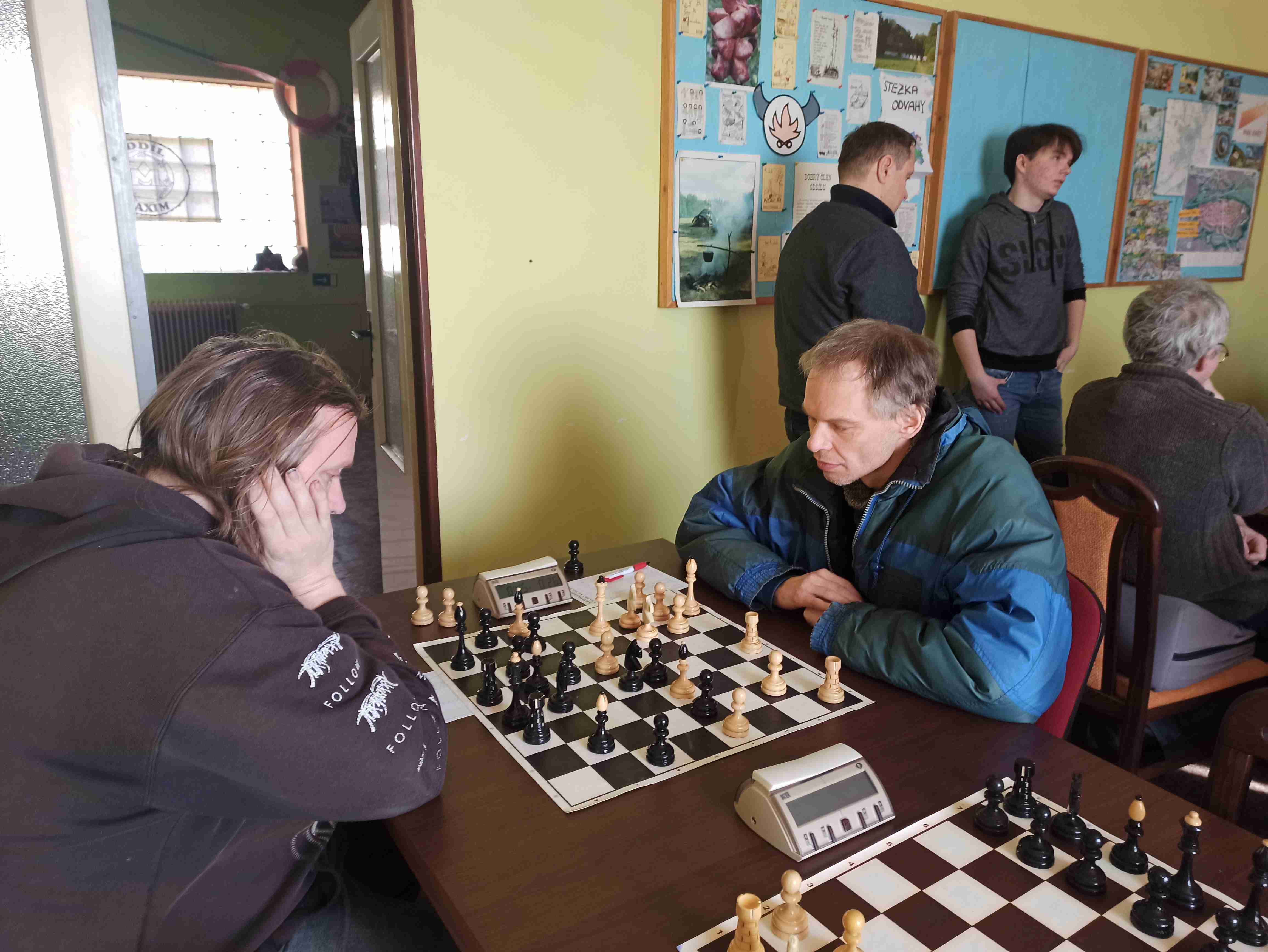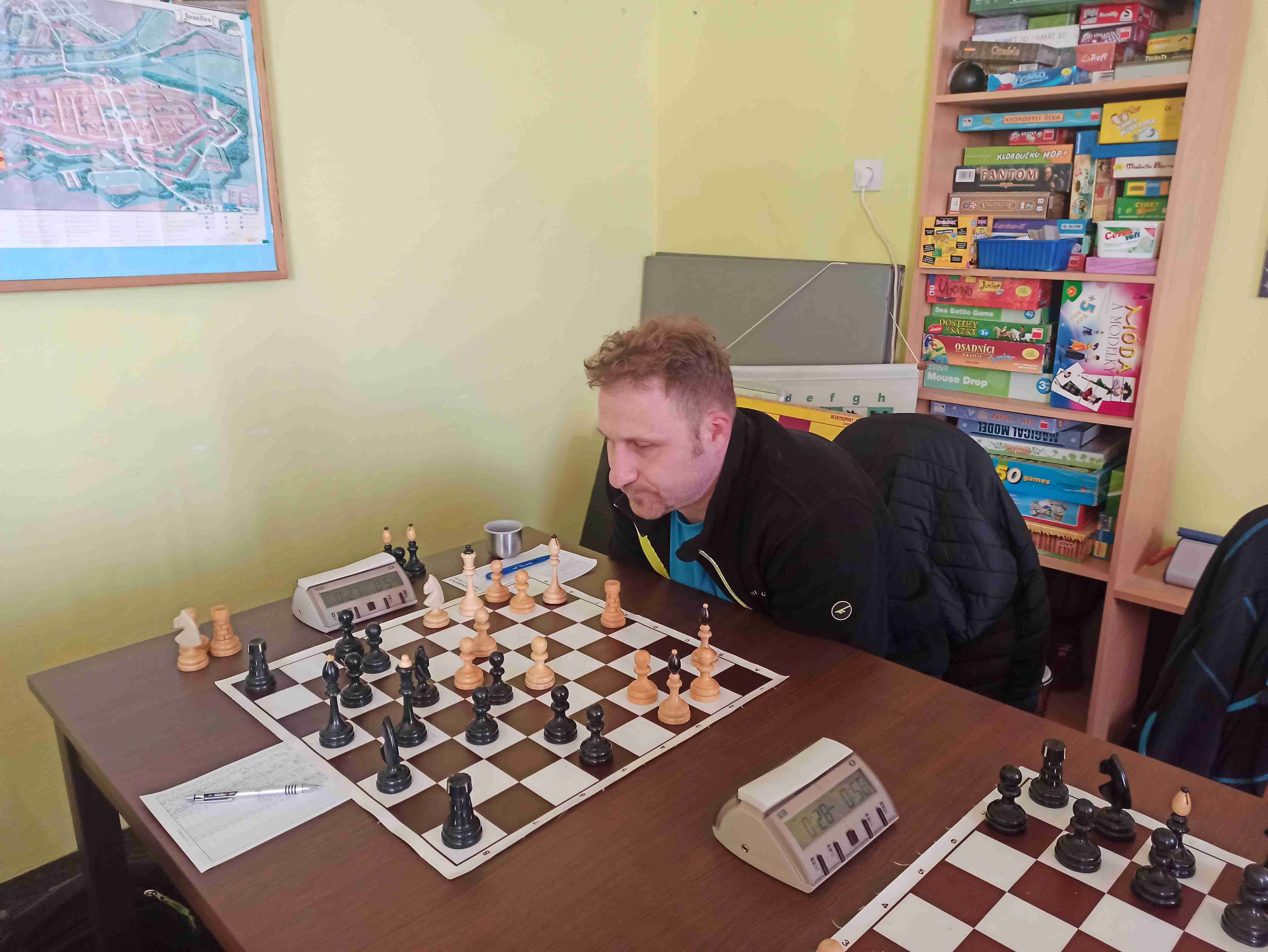 Na druhé šachovnici mě (Petr Staněk) čekal Petr Pultar. Soupeř se snažil hrát aktivně, ale ve střední hře nepokračoval nejlépe, přehlédl dvojí úder na f2 a potom mi daroval vítězství, když přehlédl vidle na oba jezdce. Srovnáno na 1,5-1,5.