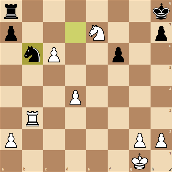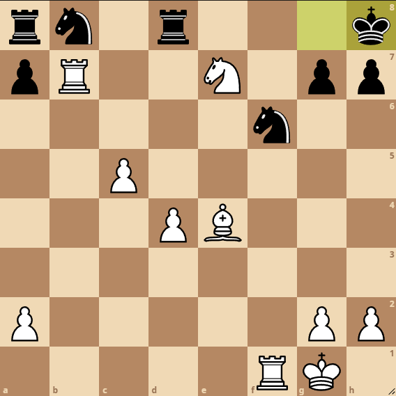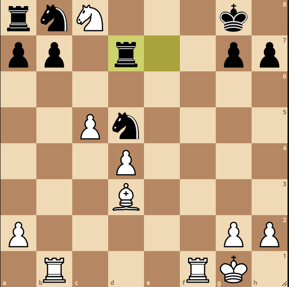Tady jsem si započítal, abych se ujistil, že už je to ložený: 29...Jxe4 30.Je7+ Vxe7 31.Vxe7 Jf6 32.Vxf6 gxf6 33.Ve8+ Kf7 34.Vc8 Ke7 (34...a5 35.c6 Va6 36.c7 Jd7 37.Vf8+ ) 35.c6
