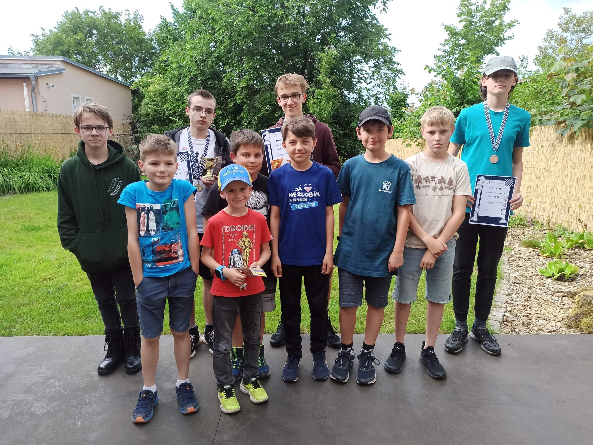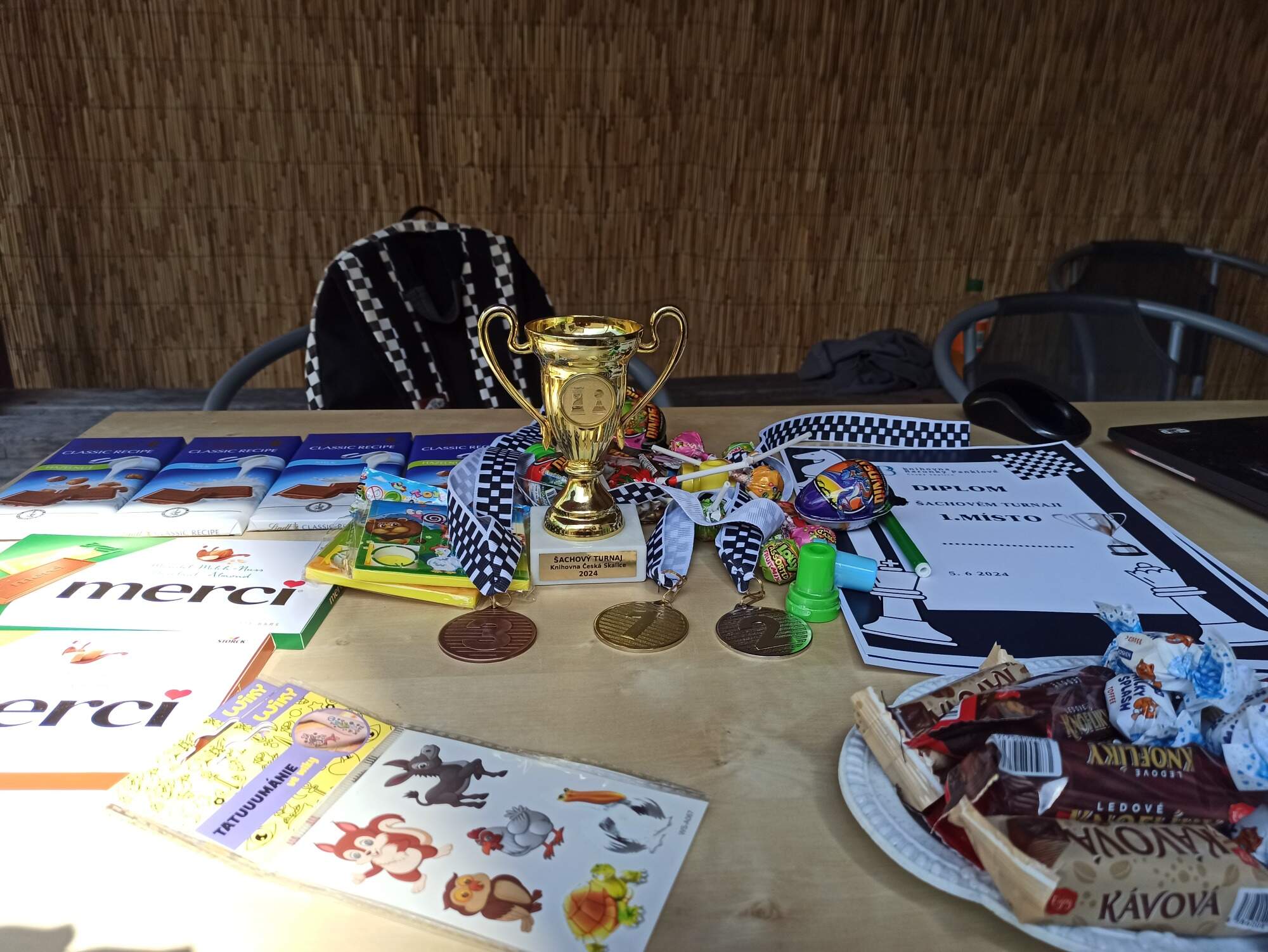 Ve středu 5. 6. 2024 odpoledne jsem v krásném prostředí zahrady v knihovně v České Skalici uspořádal přebor místního šachového kroužku. Hrálo se na 5 kol rapid tempem 2 x 10 minut na partii. Na startovním poli se sešlo 10 žáků ve věku od 7 do 17 let. Pohár pro vítěze a zlatou medaili vybojoval Tobiáš Raule s 5b/5. Druhou stříbrnou příčku obsadil Lukáš Minár 4b/5 a třetí skončil s bronzovou medailí Vincenc Linhart s 3b/5. Vítězům gratulujeme.
